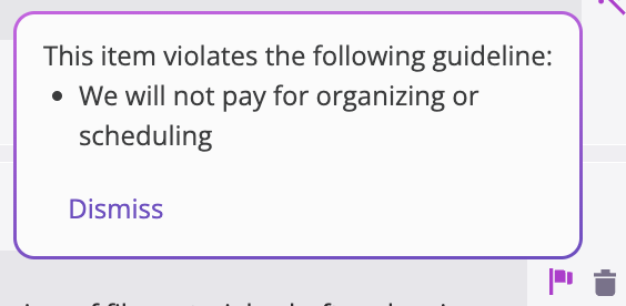 - A flag indicates a violation detected by our auditing system. Clicking the flag shows the predicted violation.