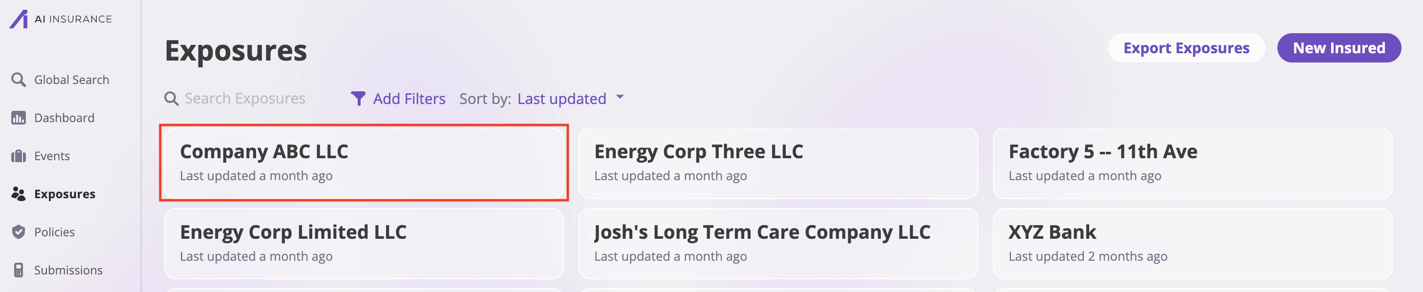 - Go to the Exposures page by clicking on the Exposures tab in the left sidebar