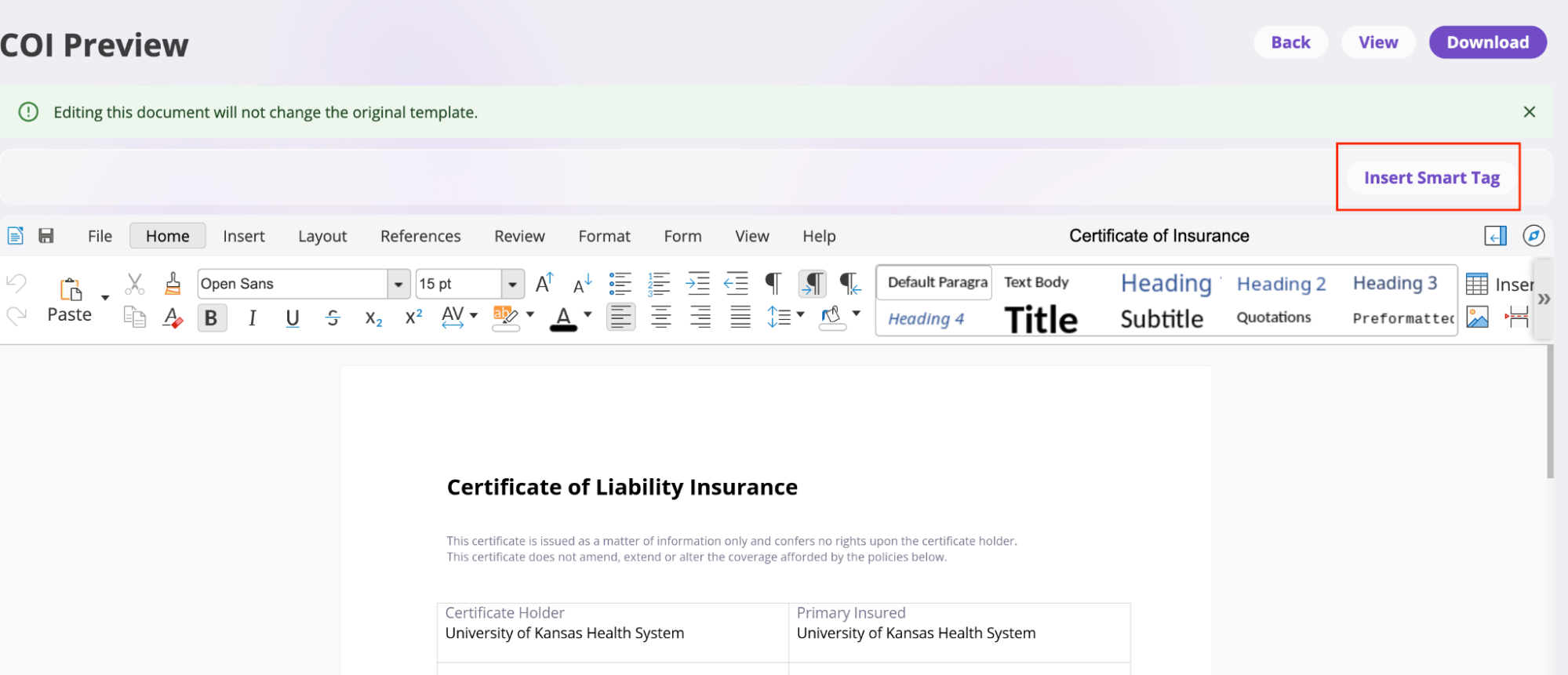 - Download the COI: Click the Download button to save the COI to your device based on your browser’s download settings.