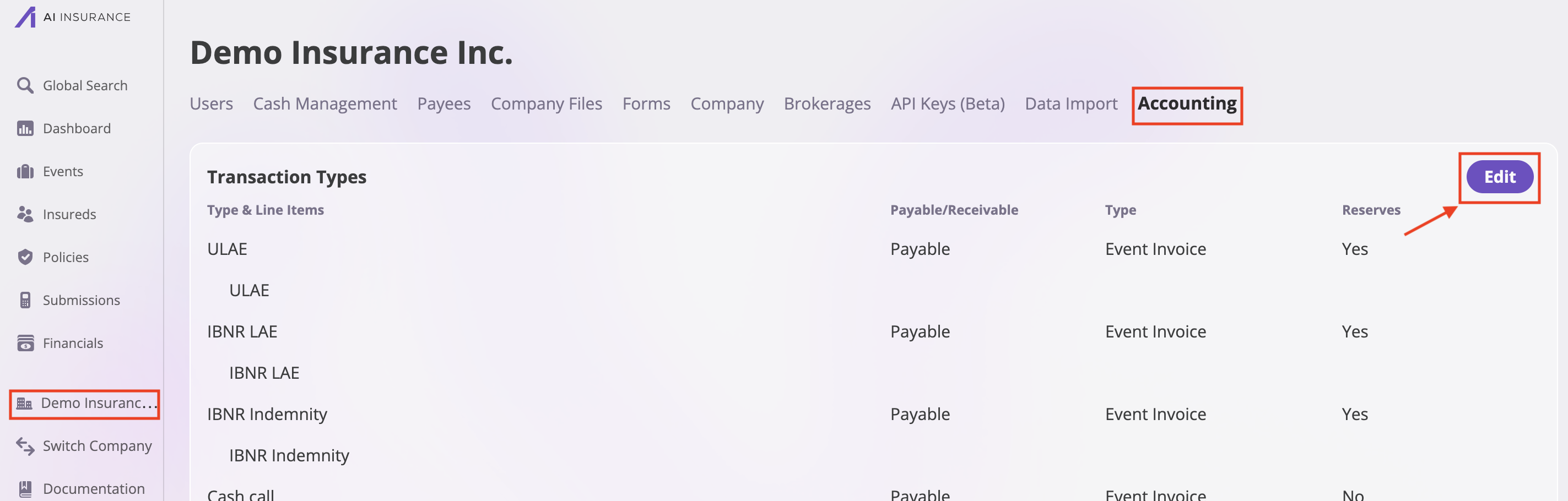 Payable Accounts:- Parent: “ULAE” (Payable, Event Invoice, Yes for Reserves)
