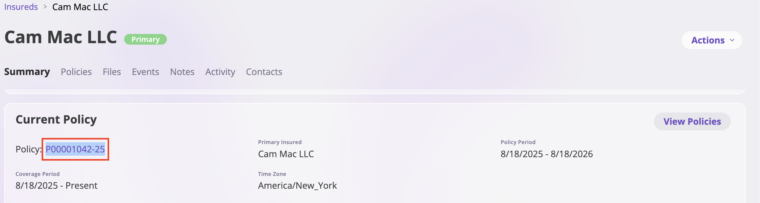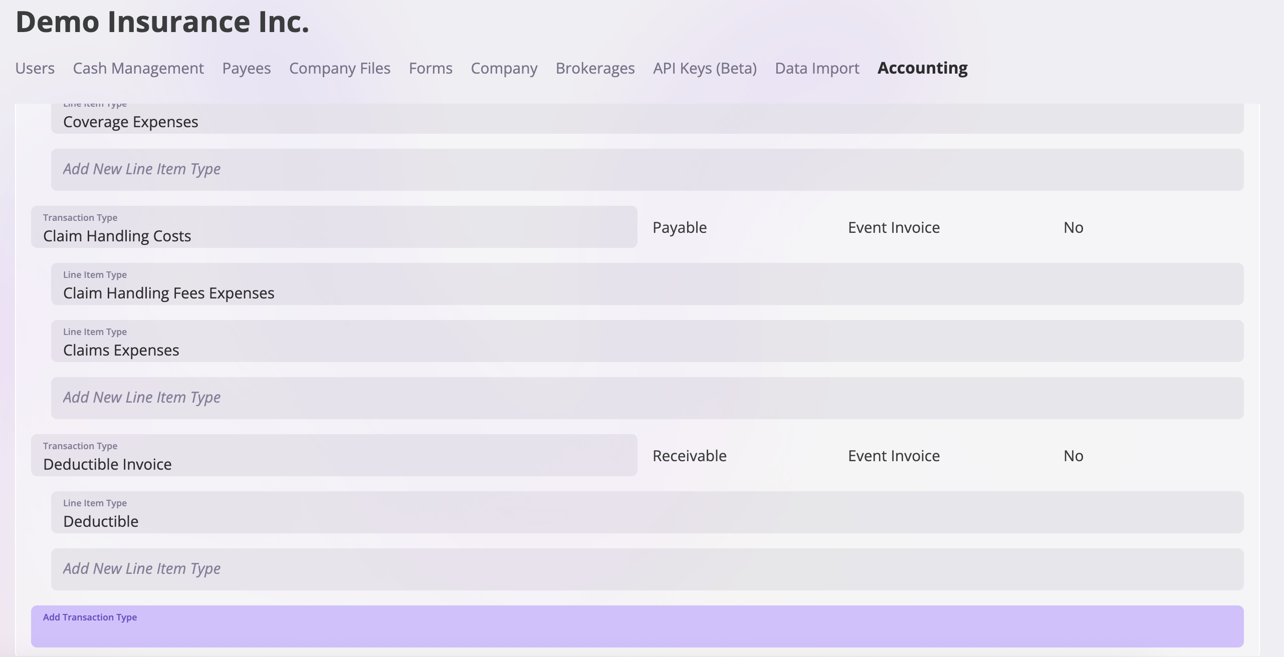 - Parent: “Policy Invoice” (Receivable, Policy Invoice, No for Reserves)
