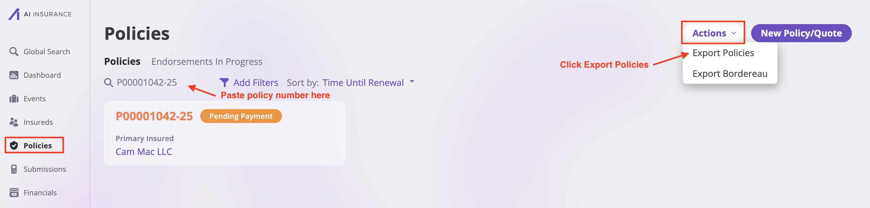 - Do not click on the policy - instead, click “Export Policies” in the top-right corner