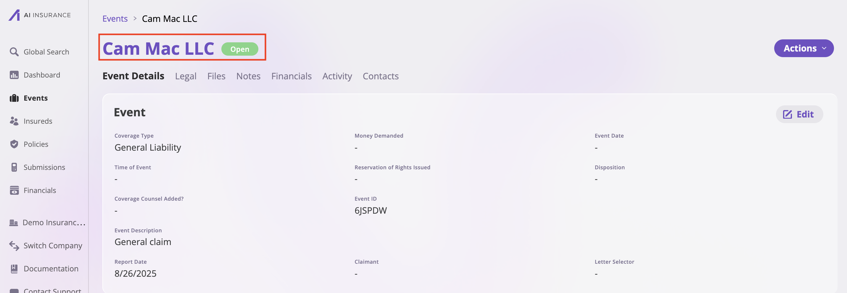 - Invoice Type: Select “Event Invoice” for claim-related transactions or “Policy Invoice” for policy-related transactions