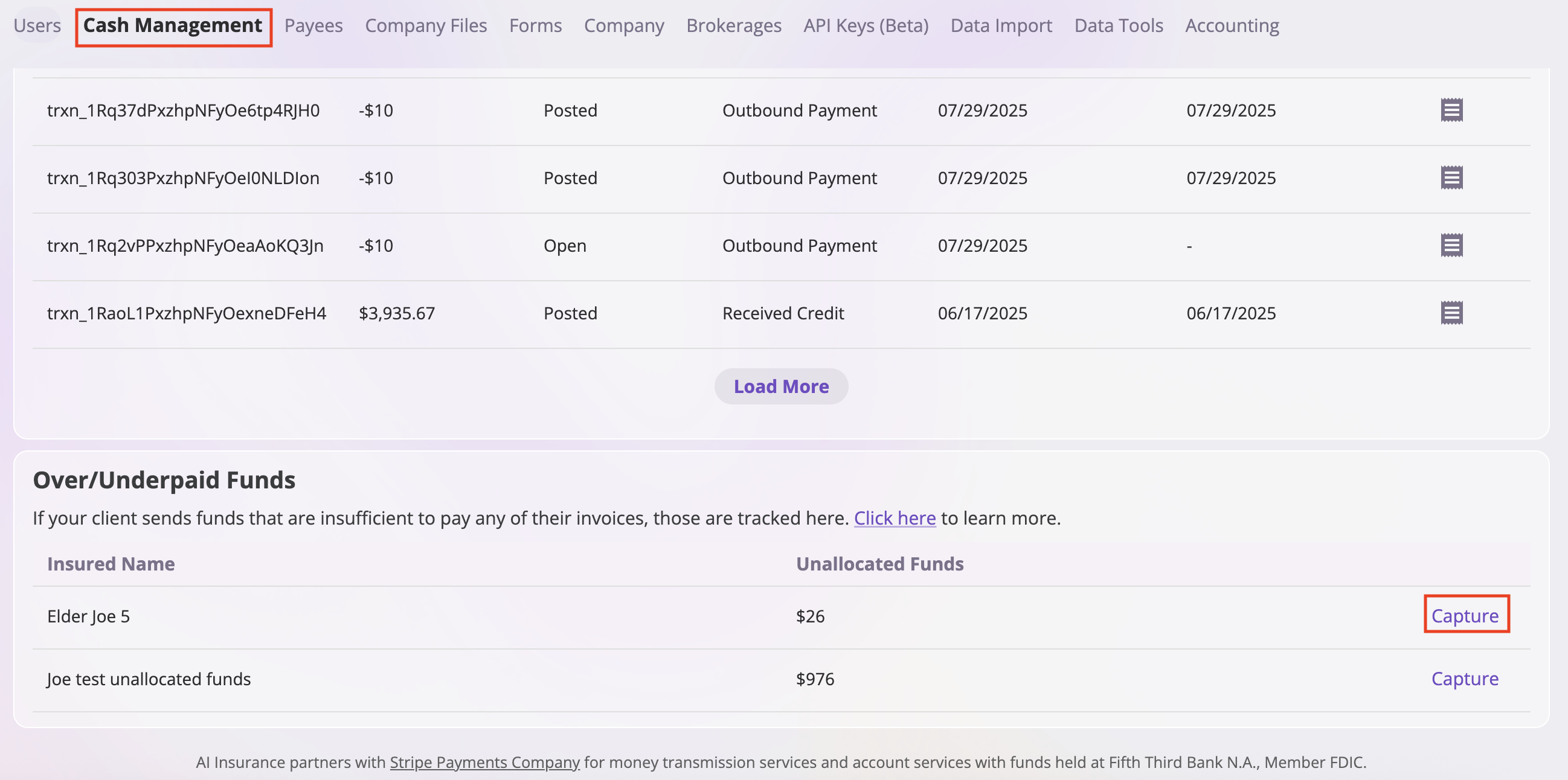 After creating the invoice, reach out to support at support@aiinsurance.io to request that the unallocated funds be allocated to the newly created invoice. Support will handle the allocation process for you.Note: This process requires support assistance to complete the allocation. Make sure to have the invoice number ready when contacting support.