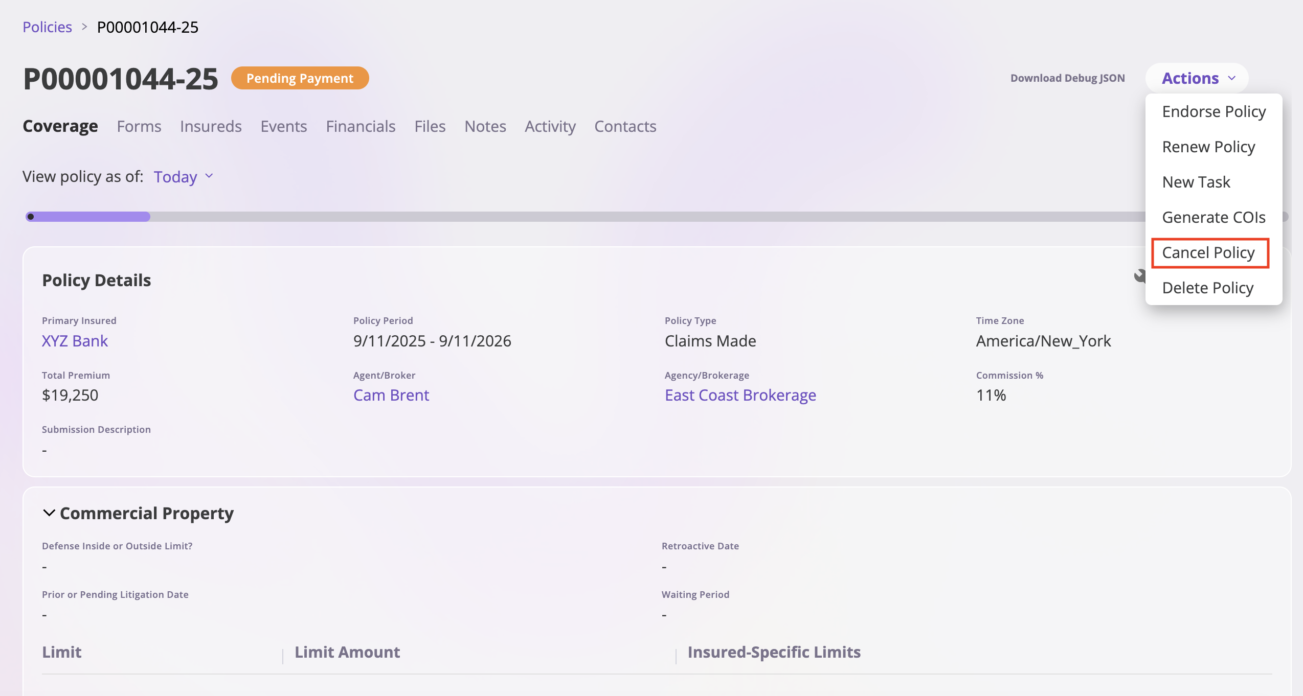 Follow these steps to cancel a policy in the system:Step 1: Navigate to the Policy